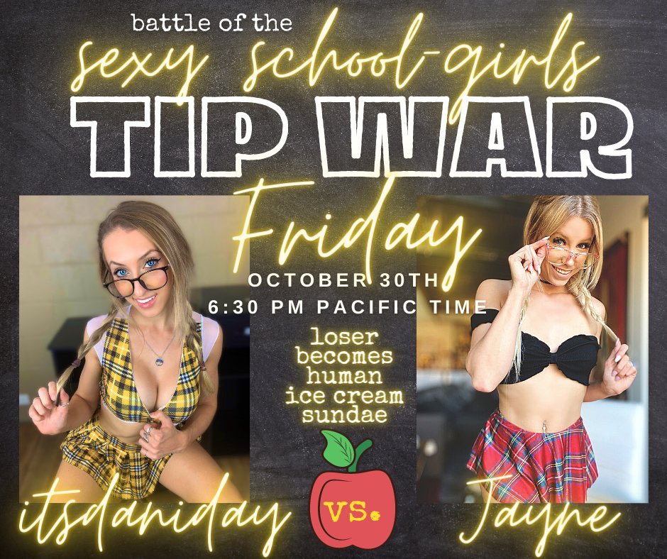 🚨TODAY IS THE DAY!🚨 TIPWAR TONIGHT AT 6:30PM PST AGAINST @premiumjayne🔥 You guys aren’t gonna want to miss this one!! There’s going to be a special tip menu, discounts on content, and a FREE shower show if we win😏 Help me kick Jayne’s butt... and cover it in ice cream😜😈 https://t.co/pFMKYwV5Ee