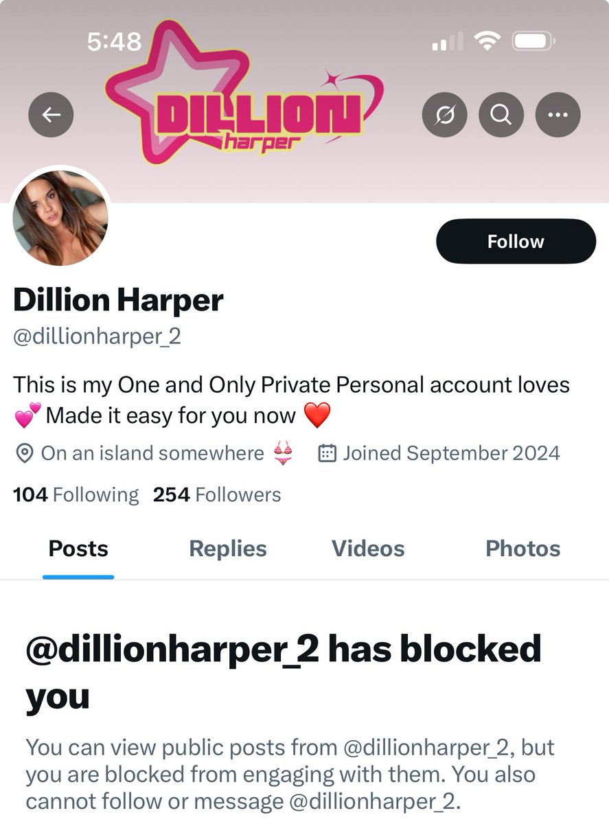 This scam account @dillionharper_2 has now blocked me lmao 🤣 some of you are following this account bc I looked at all my followers who fell for her/his scam so please check to make sure if you are the one I’m talking about! I DO NOT HAVE ANOTHER X ACCOUNT THIS IS IT BABES PLEASE BLOCK AND REPO@dillionharper_2 🤬🤬🤬🤬