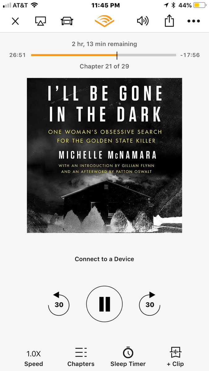 Started #I’llBeGoneInTheDark audiobook today. 2 hrs of 9 left. Listened to & from Coachella valley. It’s unbelievable. Michelle McNamara is resting in Peace now for sure. What a brilliant writer. I e been reading true crime since I was 11 & this is truly incredible @pattonoswalt https://t.co/b6a0s1t43s