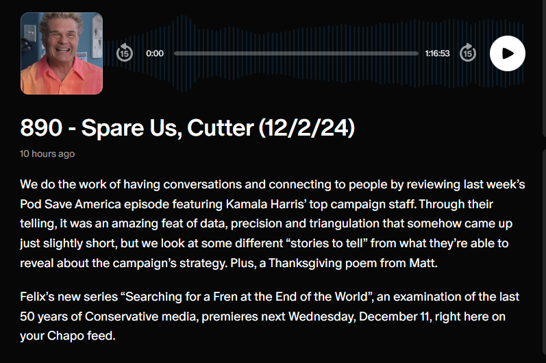 We listen to the "What Went Wrong?" episode of Pod Save America, so you don't have to. Plus a Thanksgiving poem from Matt.
