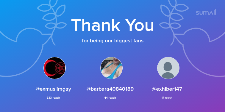 Our biggest fans this week: exmuslimgay, barbara40840189, exhiber147. Thank you! via https://t.co/vzxFdfvSeE https://t.co/V5KZGQx3v2
