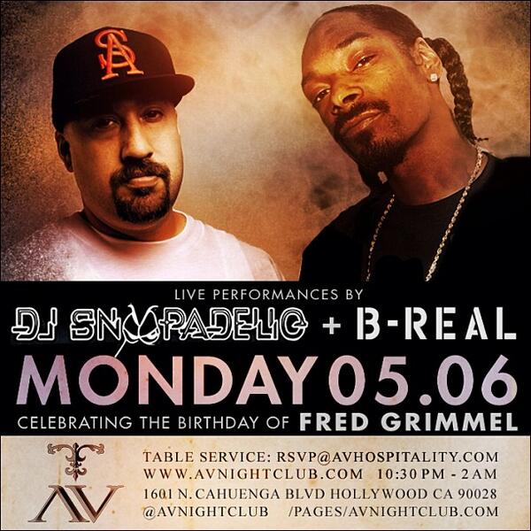 Snoop Dog & B-Real are performing at AV Nightclub Tonight!. http://t.co/tvfVCbZz0O