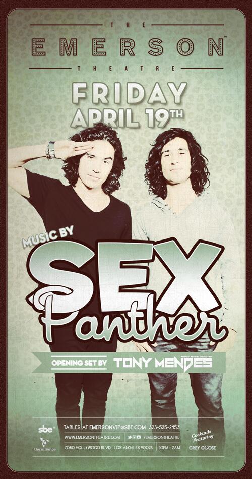 SEX PANTHER at THE EMERSON | This is gonna be a fun night! #friday @SBEnightlife #Hollywood http://t.co/Yj2t1kubtN