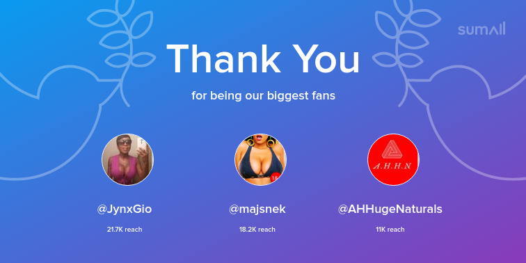 Our biggest fans this week: JynxGio, majsnek, AHHugeNaturals. Thank you! via https://t.co/7jmtaMvHaC https://t.co/1txUULYo1g