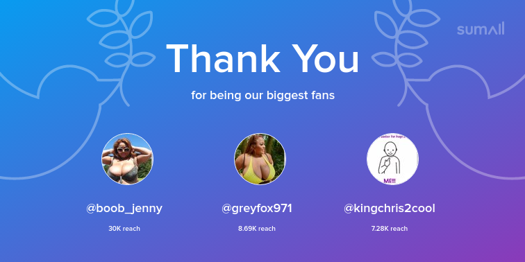 Our biggest fans this week: boob_jenny, greyfox971, kingchris2cool. Thank you! via https://t.co/7jmtaMvHaC https://t.co/YNCvZv2LL9