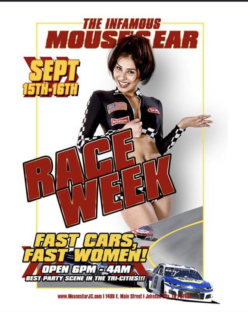 This weekend!!! @MousesEar2 Johnson City!! Its #NASCARPlayoffs #NASCAR at Bristol!!! We have the party every night!!! https://t.co/5xEcJ3bZbZ