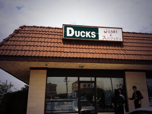 In front of #Ducks for lunch. @StatsmanBruno @KawaDota @dpmlicious all think this place is sketchy #realasainfood http://t.co/QxObclwYkd