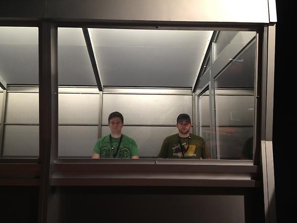 Chandler and @cheweh_g pretending to play @DOTA2 in the sound proof player pods #dota2ti http://t.co/a7QqWkOt