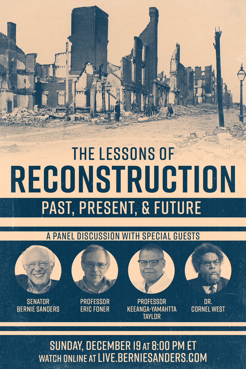 TOMORROW, 8PM ET: Join me, Professor Eric Foner, @KeeangaYamahtta, and @CornelWest for an important panel discussion on the lessons of Reconstruction.