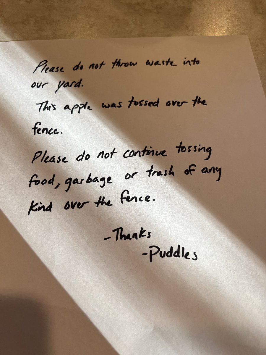 So my neighbors threw a suspicious apple into our yard and who knows, maybe tried to poison Puddles. Hoping I handled this alright. https://t.co/6kX01oLDZh