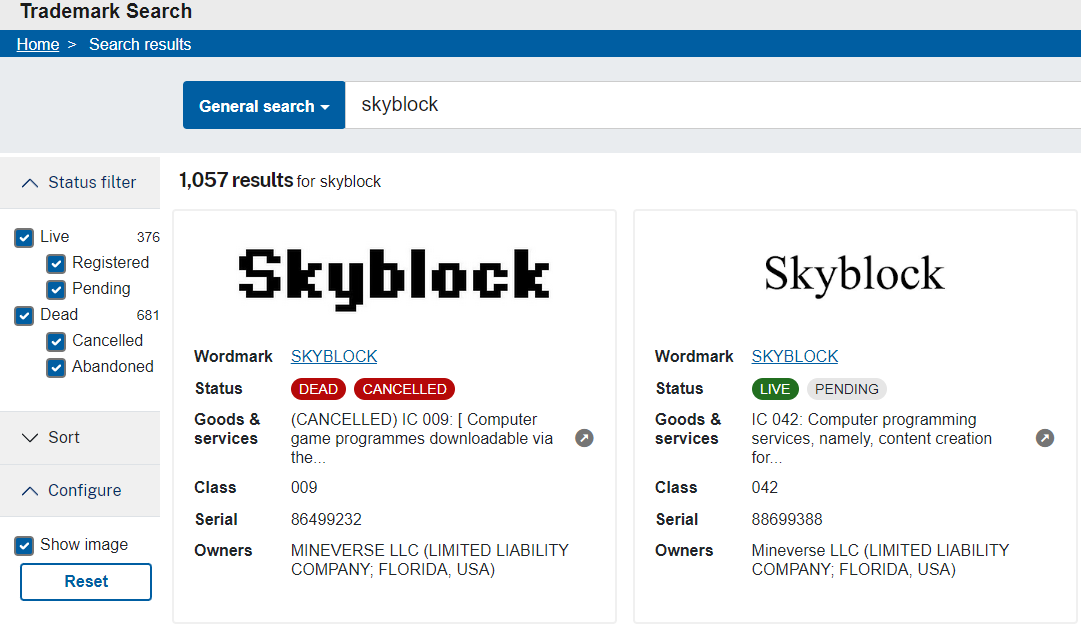 Someone is trying to trademark Skyblock.. why is no one talking about this lol. I recently stumbled upon the trademark filing last night https://t.co/LDZN1uPe7S
