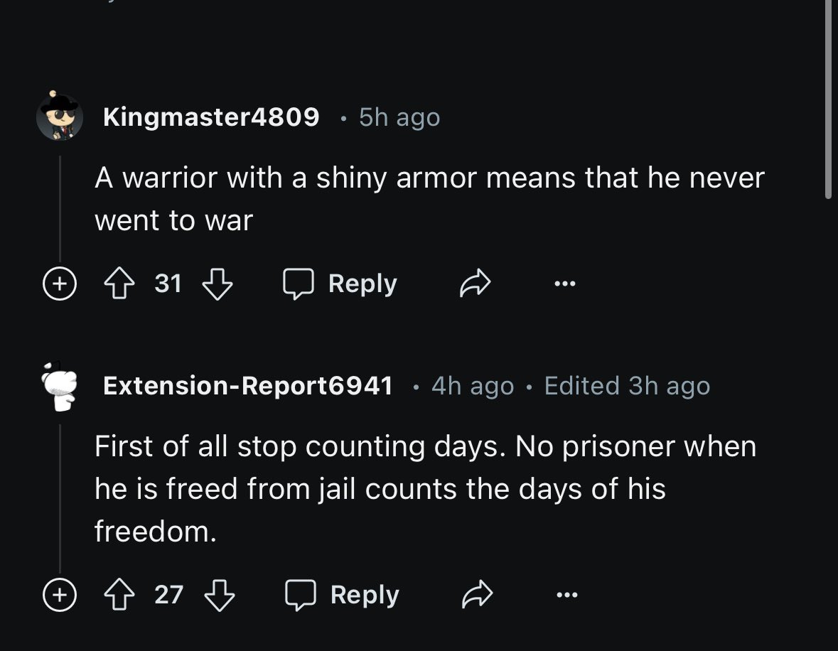 This is the funniest shit ever made my morning “A warrior with a shiny armor means that he never went to war” https://t.co/5QQ55JaDA3