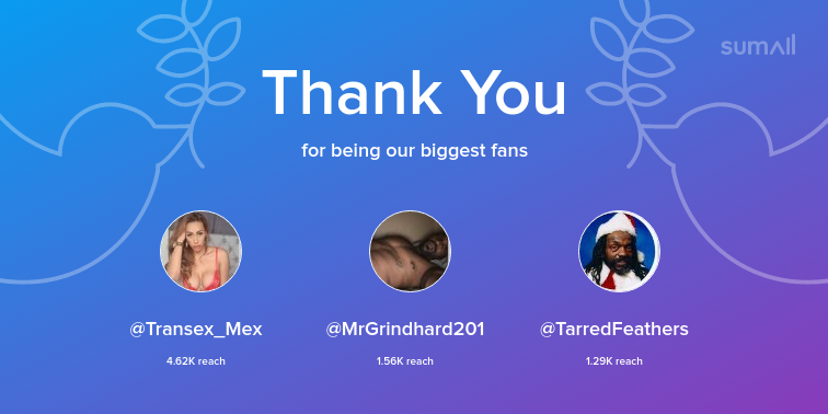 Our biggest fans this week: Transex_Mex, MrGrindhard201, TarredFeathers. Thank you! via https://t.co/MQbZ2Va1B6 https://t.co/sS883MJukE