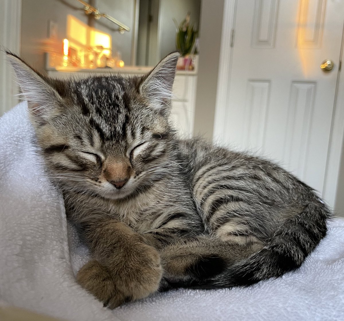 My new kitty ๐Ÿ’œโ˜”๏ธ Prince.. he likes to wait outside the bathtub for me lol ๐Ÿฅฐ https://t.co/vPsL0bwm6I