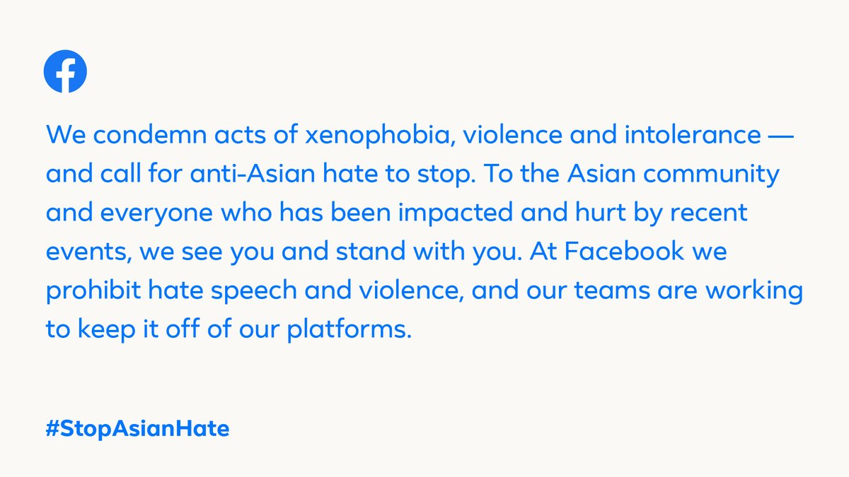❤️ Facebook app stands in support and solidarity with the Asian community. https://t.co/HWM7ofubBq