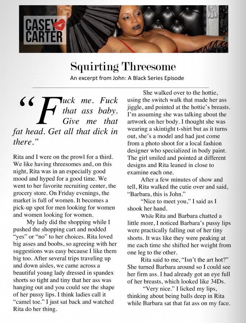 This month, ... Squirting Threesome from John: A Black Series Episode. Shopping for produce takes on a whole new meaning in this story. Click here to ...