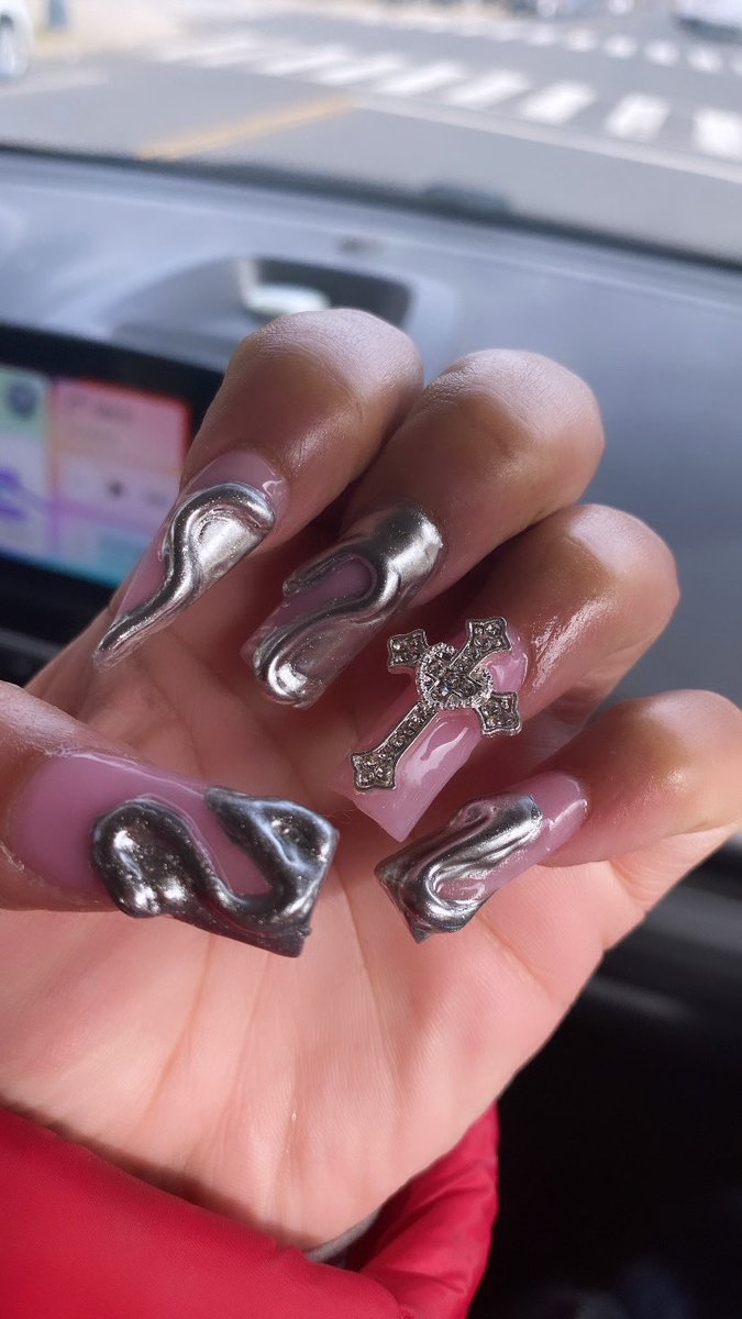 my nail tech didn't play with this chrome set ๐Ÿชฉ๐Ÿซงโ›“๏ธโš“๏ธ https://t.co/VvaaZSh8Oy