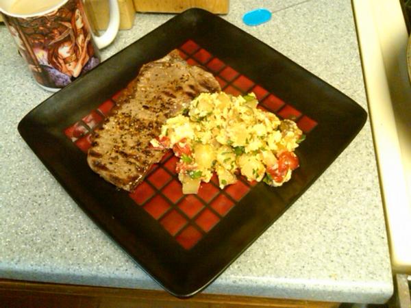 Feeding the king Steak & Eggs for breakfast! Ladies better feed ur man right! ;) http://t.co/2ZRwKQmj