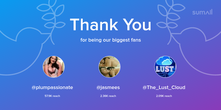 Our biggest fans this week: plumpassionate, jasmees, The_Lust_Cloud. Thank you! via https://t.co/7jmtaMvHaC https://t.co/lzrq8tJJz3