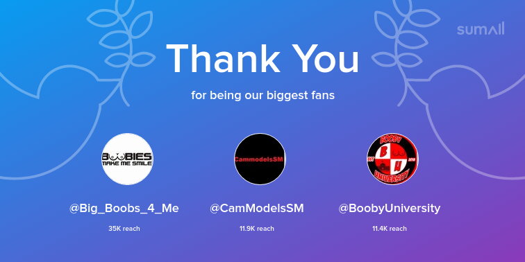 Our biggest fans this week: Big_Boobs_4_Me, CamModelsSM, BoobyUniversity. Thank you! via https://t.co/7jmtaMvHaC https://t.co/WT8tsdKSv6