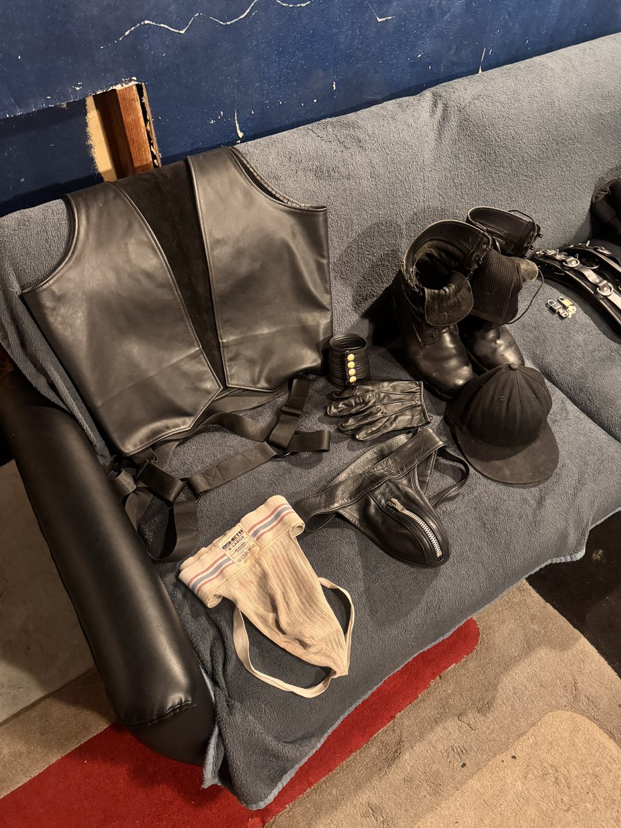 My boy asked me to gear up for our dungeon time tonight, so got it laid out and he will watch as I dress. I picked out a few things he’ll be wearing t...