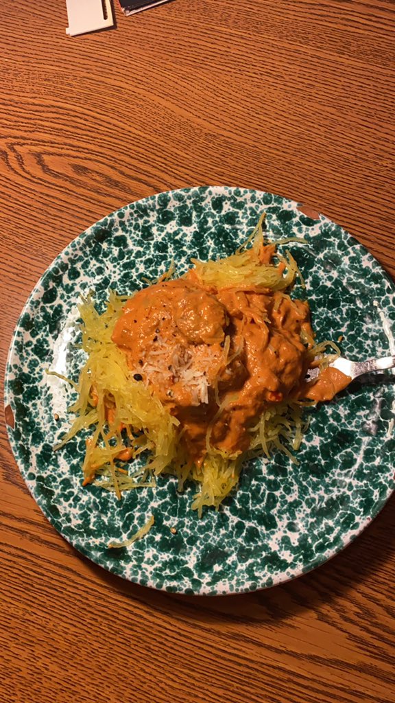 Vodka sauce with spaghetti squash and hot turkey Italian sausage πŸ˜‹ https://t.co/XxEmwpyO4P