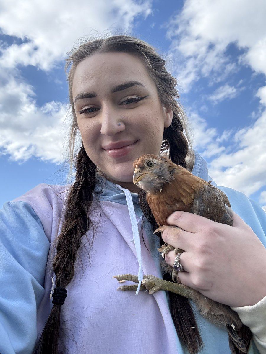 I’ve been training this chicken to perch on my arm/shoulder so I can do cosplays as a Viking woman with her war hen. https://t.co/K1q3jiKxAd
